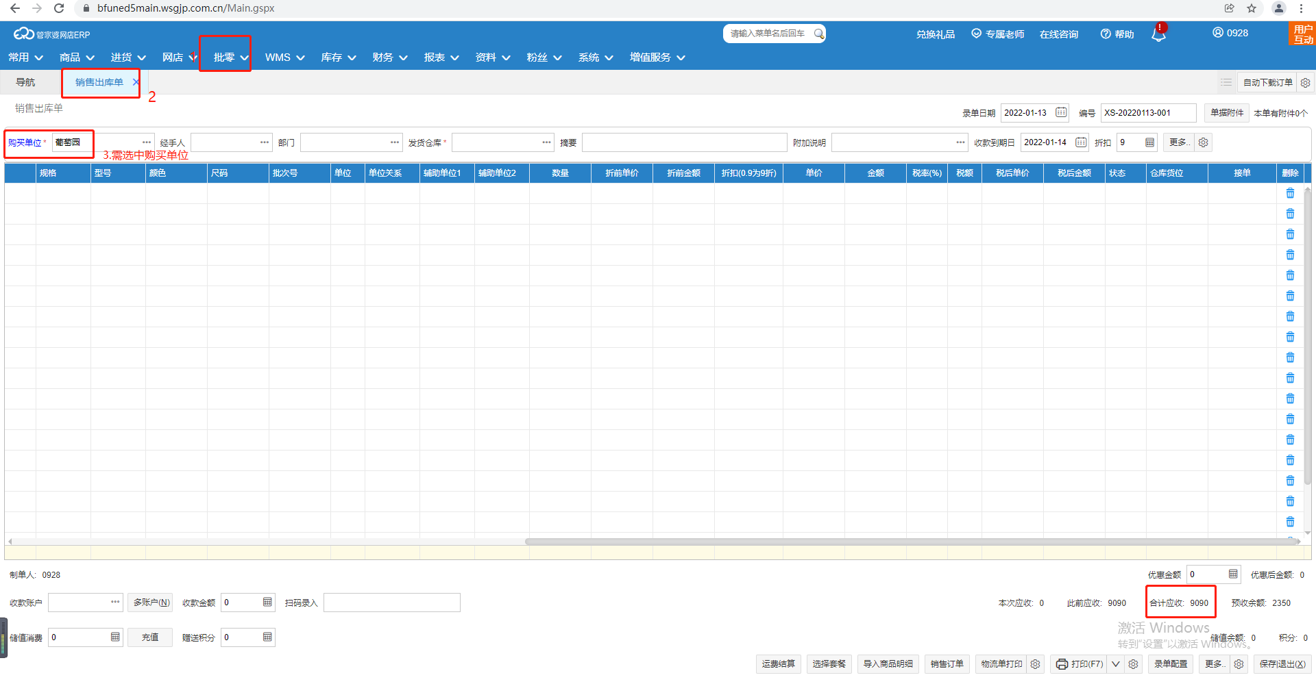 您好,做销售出库单据需先选择【购买单位】,操作路径【批零】-【销售出库单】选中【购买单位】后,右下角会显示【合计应收】,