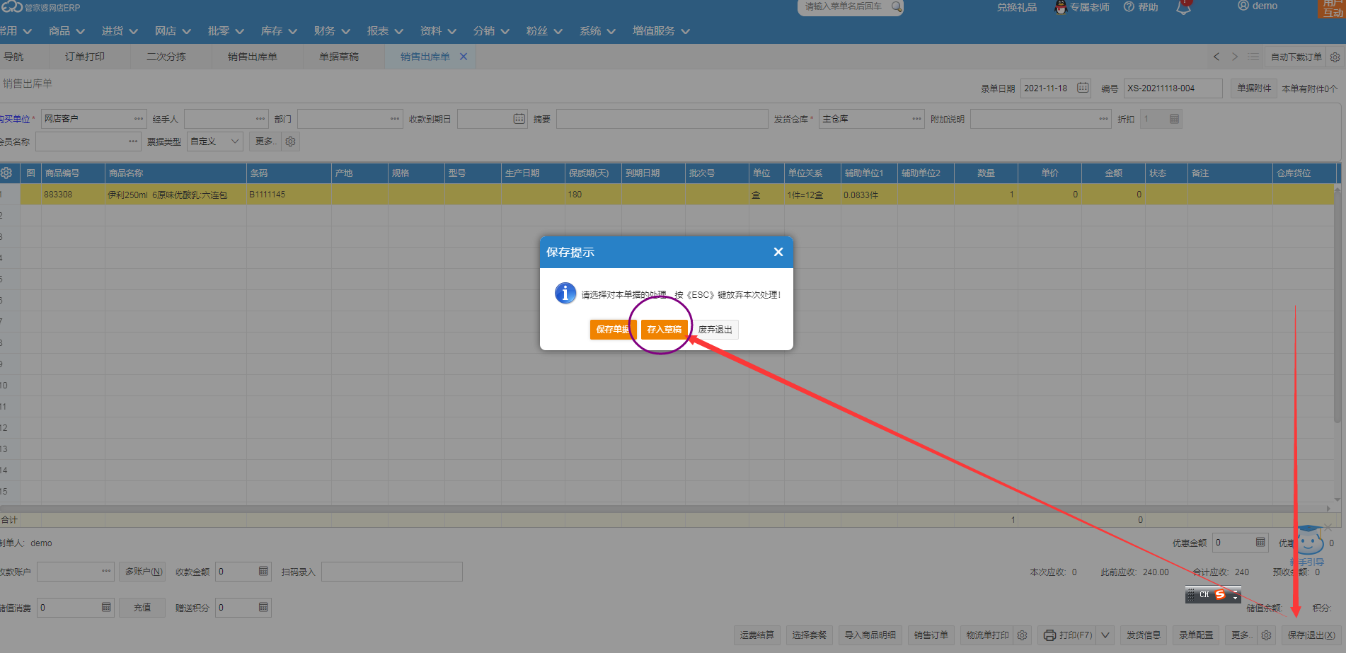 您可以先将单据操作打印后,再对单据点击【保存】-【存入草稿】